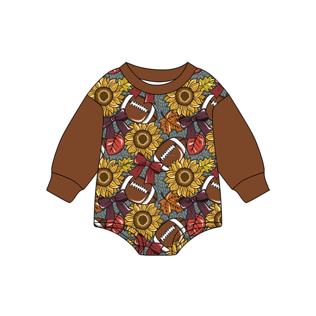 Brown long sleeves football sunflower bow baby girls romper - 0-3M is backordered and will ship as soon as it is back in stock.