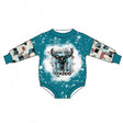 Bull skull rodeo cactus baby kids western romper