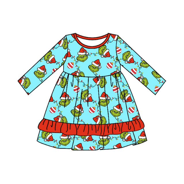 Christmas lighting green face red ruffle girls dresses - 3-6M is backordered and will ship as soon as it is back in stock.