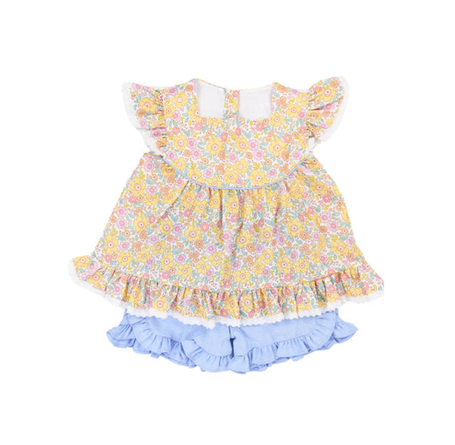 Floral flutter sleeves tunic ruffle shorts girls clothes