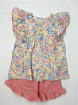Floral flutter sleeves tunic shorts girls clothing set