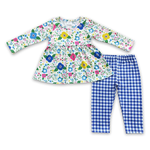 Floral tunic blue plaid leggings girls fall clothing