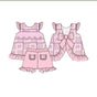 Flutter sleeves bow floral patchwork girls summer outfits - 3-6M is backordered and will ship as soon as it is back in stock.