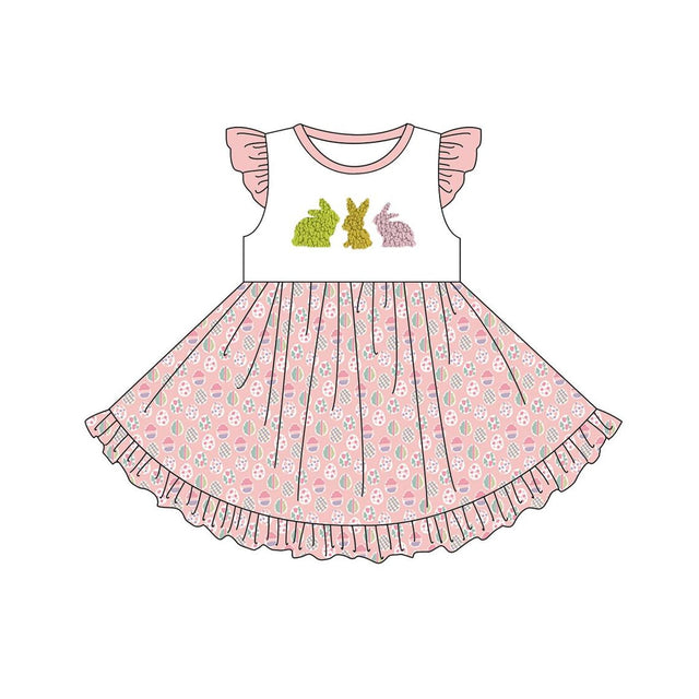 Flutter sleeves bunny eggs ruffle kids girls Easter dress