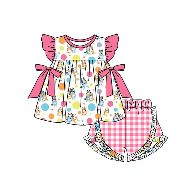 Flutter sleeves dogs polka dots tunic plaid shorts girls clothes