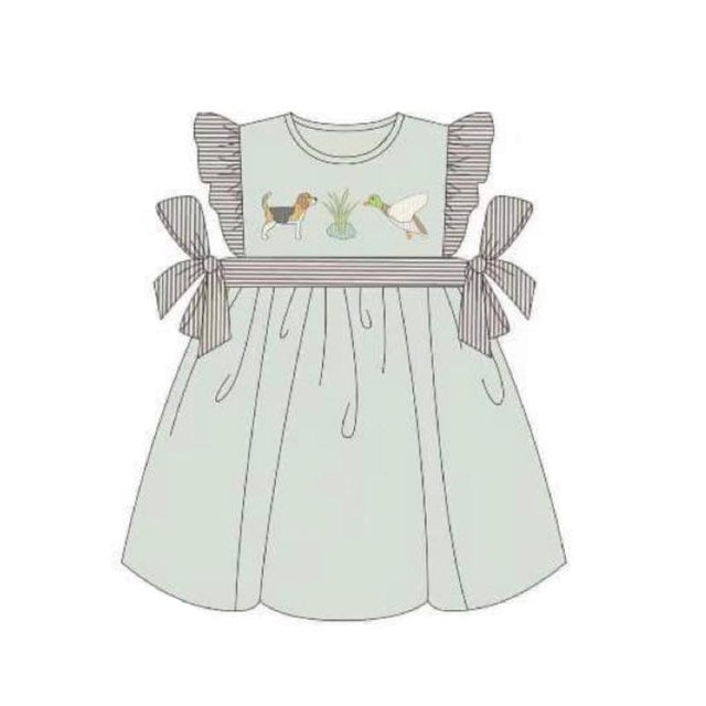 Flutter sleeves duck dog bow kids girls dresses