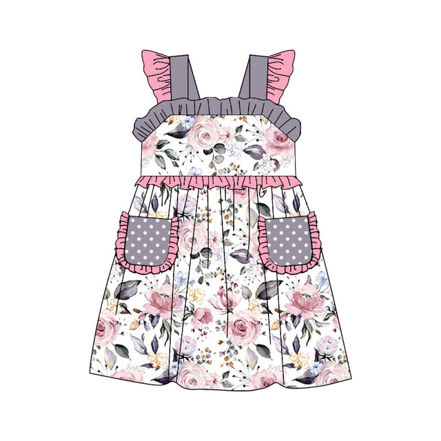 Flutter sleeves floral pockets baby girls summer dress - 3-6M is backordered and will ship as soon as it is back in stock.