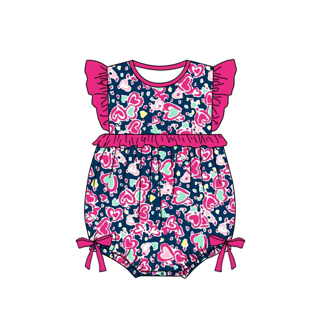 Flutter sleeves heart bow baby girls summer romper