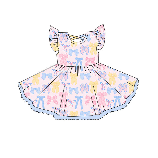 Flutter sleeves pink blue bow kids girls summer dress - 3-6M is backordered and will ship as soon as it is back in stock.