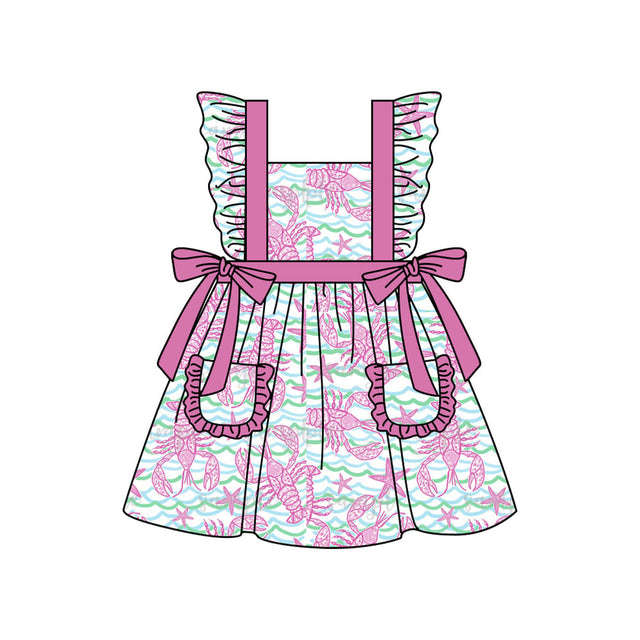 Flutter sleeves pink crawfish pockets baby girls dresses