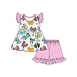 Flutter sleeves princess bow tunic ruffle shorts girls clothes