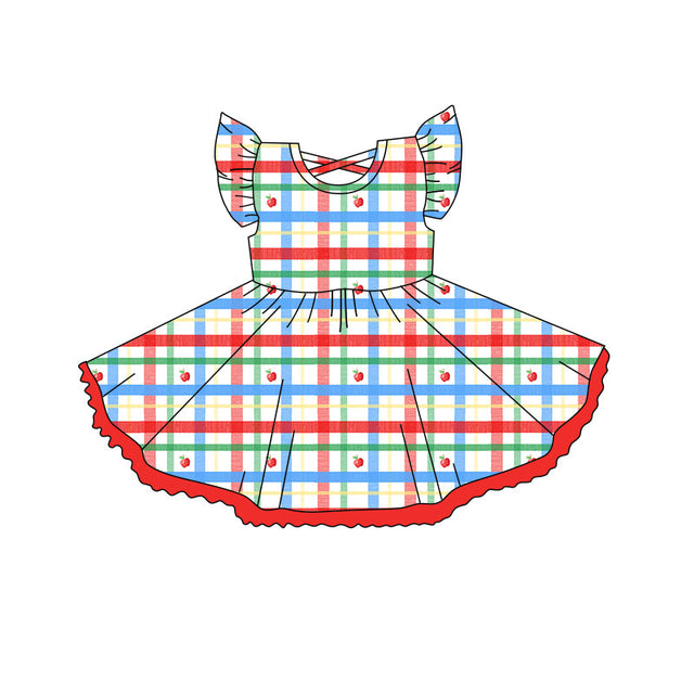 Flutter sleeves red blue apple kids girls back to school dress - 2T is backordered and will ship as soon as it is back in stock.
