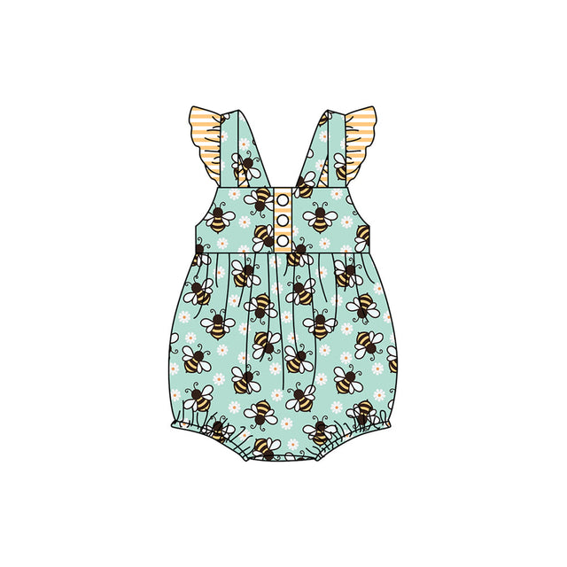 Flutter sleeves straps floral bee baby girls romper