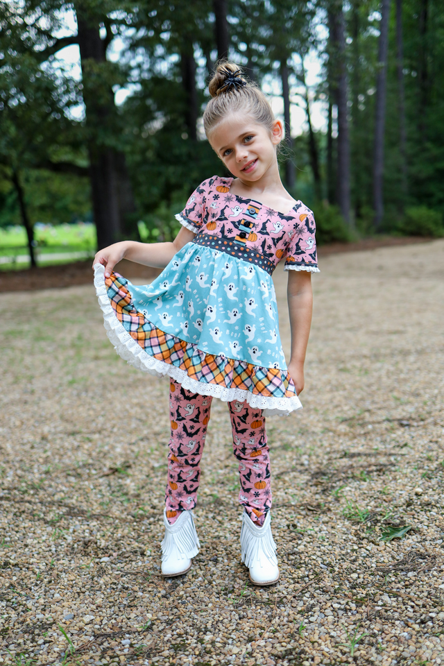 Ghost bat short sleeves tunic leggings girls Halloween clothes