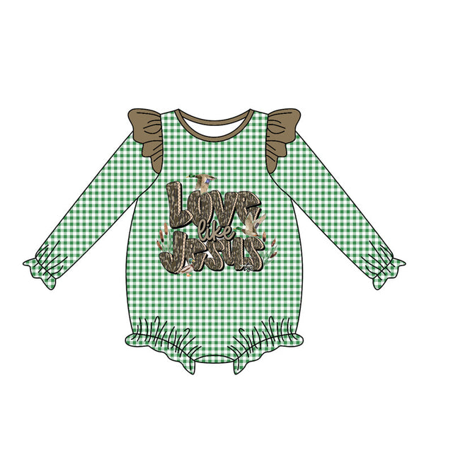 Green plaid love like jesus duck baby girls romoper