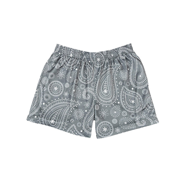Grey paisley print baby kids summer shorts - 3-6M is backordered and will ship as soon as it is back in stock.