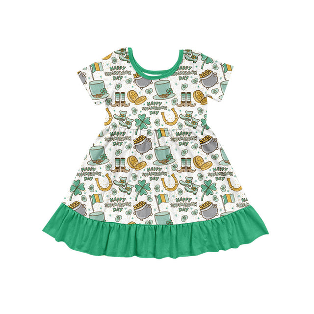 Happy shamrock day short sleeves girls St Patrick's dress - 3-6M is backordered and will ship as soon as it is back in stock.