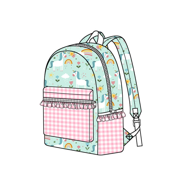 Horse rainbow floral plaid kids girls backpack is backordered and will ship as soon as it is back in stock.
