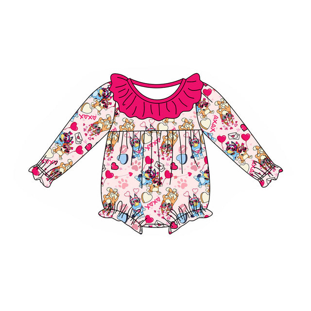 Hot pink ruffle dog heart baby girls valentine's day romper