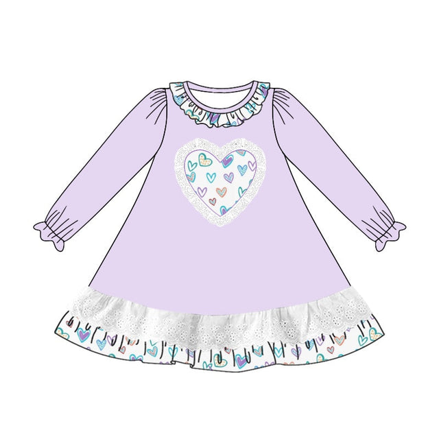 Lavender long sleeves heart ruffle girls valentine's dress - 3-6M is backordered and will ship as soon as it is back in stock.