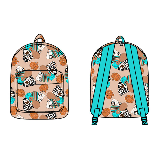 Leopard turkey pumpkin girls Thanksgiving backpack