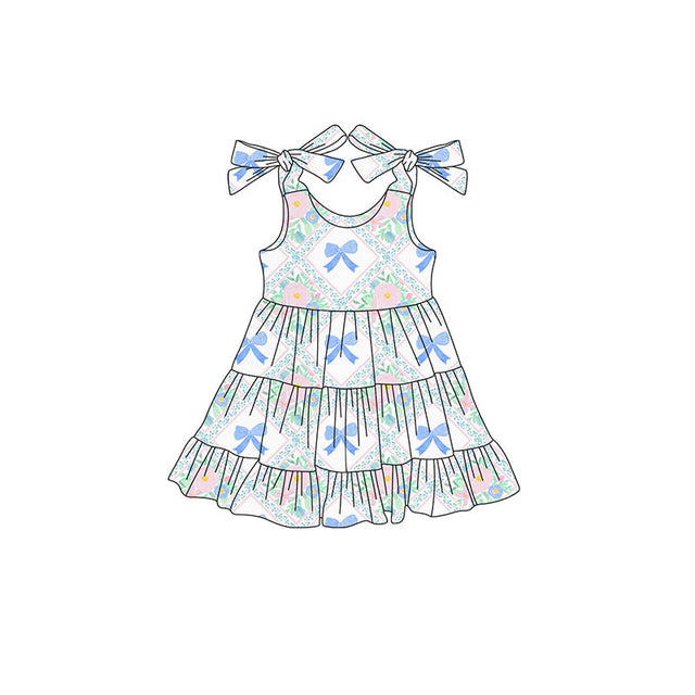 Light blue bow floral patchwork kids girls dresses - 3-6M is backordered and will ship as soon as it is back in stock.