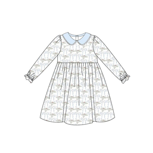 Light blue bow long sleeves girls Christmas dresses