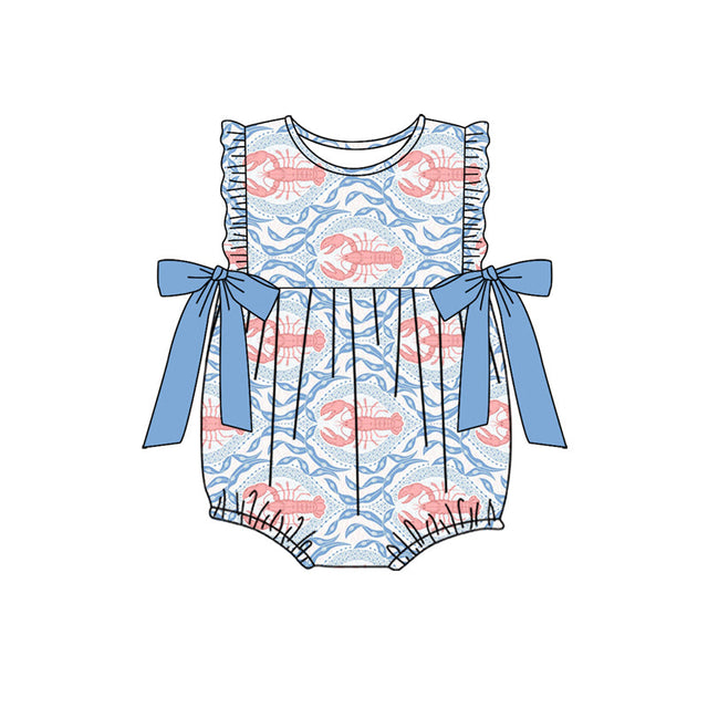 Light blue bow ruffle crawfish baby girls romper