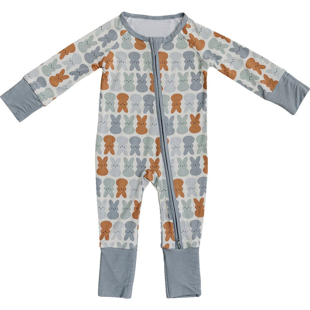Light blue bunny long sleeves baby boy zipper Easter romper