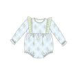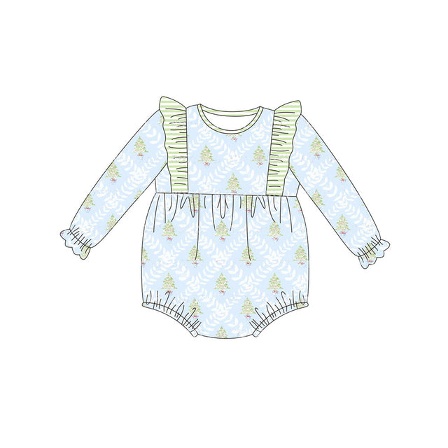 Light blue Christmas tree baby girls Christmas romper - 0-3M is backordered and will ship as soon as it is back in stock.