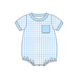 Light blue plaid short sleeves pocket baby boy romper