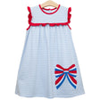 Light blue stripe ruffle bow kids girls 4th of july dresses