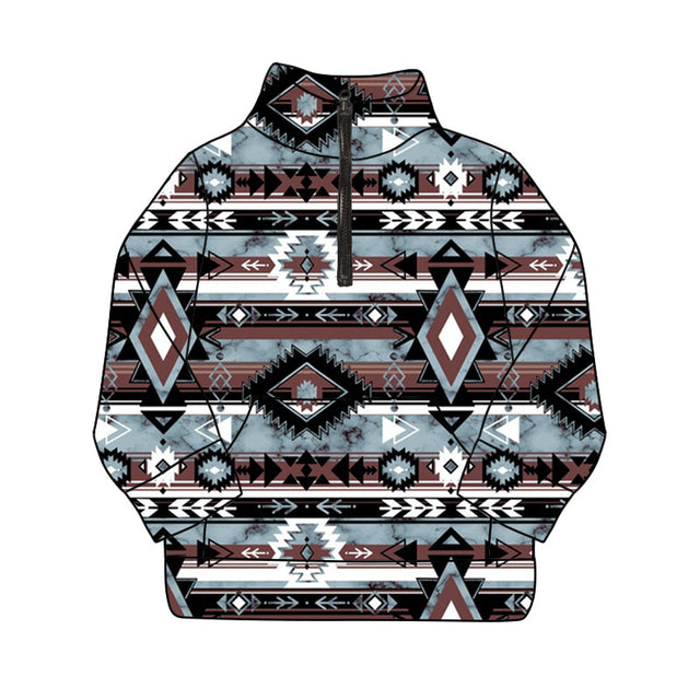 Long sleeves black aztec kids western zip pullover