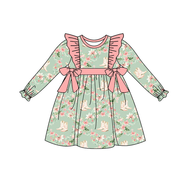 Long sleeves floral boots kids girls dresses - 3-6M is backordered and will ship as soon as it is back in stock.