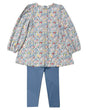 Long sleeves floral tunic blue leggings girls clothing set