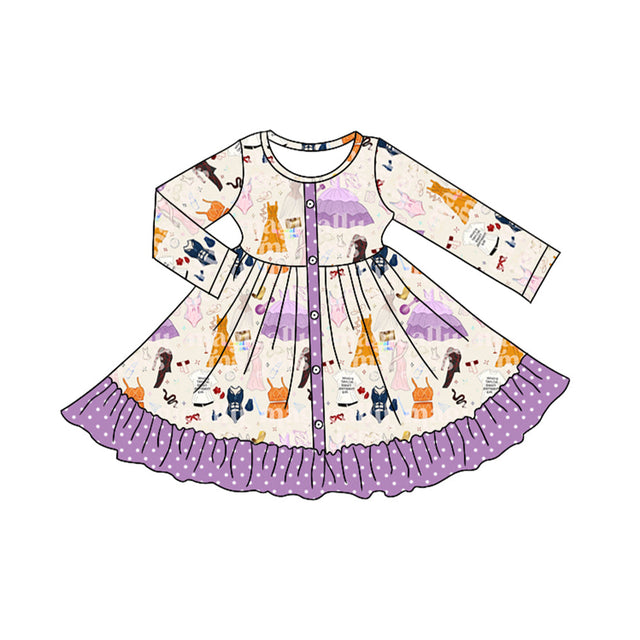 Long sleeves lavender polka dots ruffle singer girls dresses