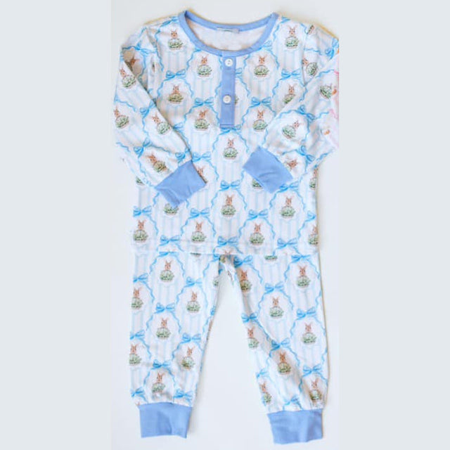 Long sleeves light blue rabbit baby kids Easter pajamas