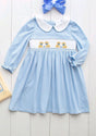 Long sleeves light blue stripe dog kids girls dresses