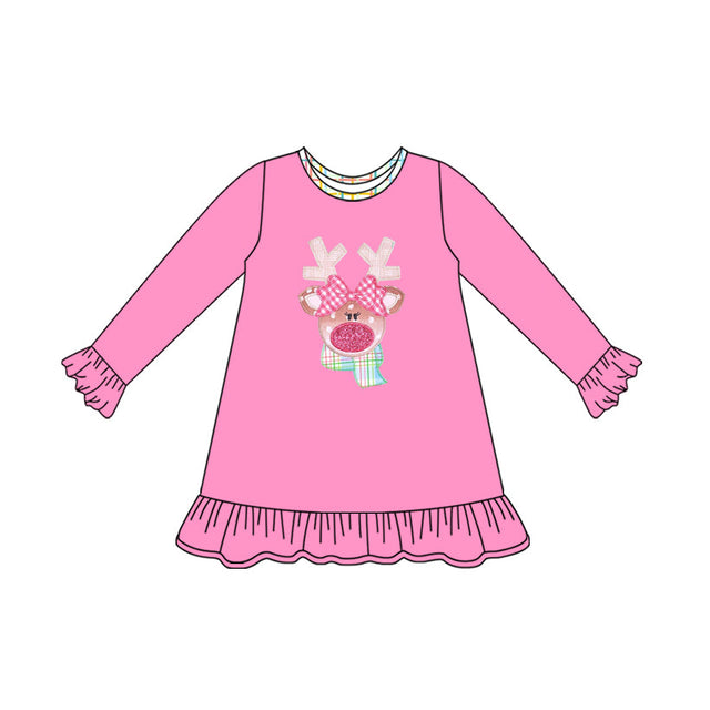 Long sleeves pink bow deer baby girls Christmas dress - 3-6M is backordered and will ship as soon as it is back in stock.