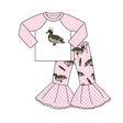 Long sleeves pink bow duck raglan pants girls clothing