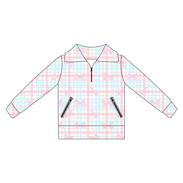 Long sleeves pink bow plaid zipper girls activewear pullover