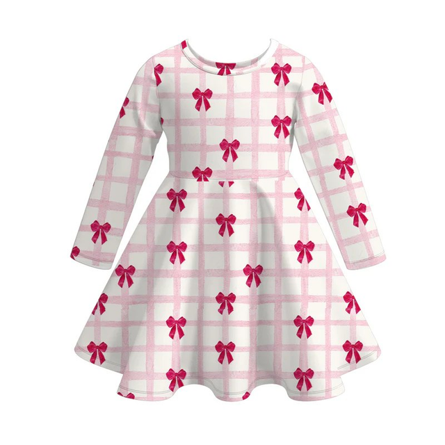 Long sleeves pink plaid bows girls valentine's dresses - 3-6M is backordered and will ship as soon as it is back in stock.