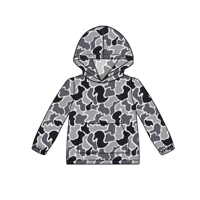 Long sleeves pocket grey camo kids boys hoodie - 3-6M is backordered and will ship as soon as it is back in stock.