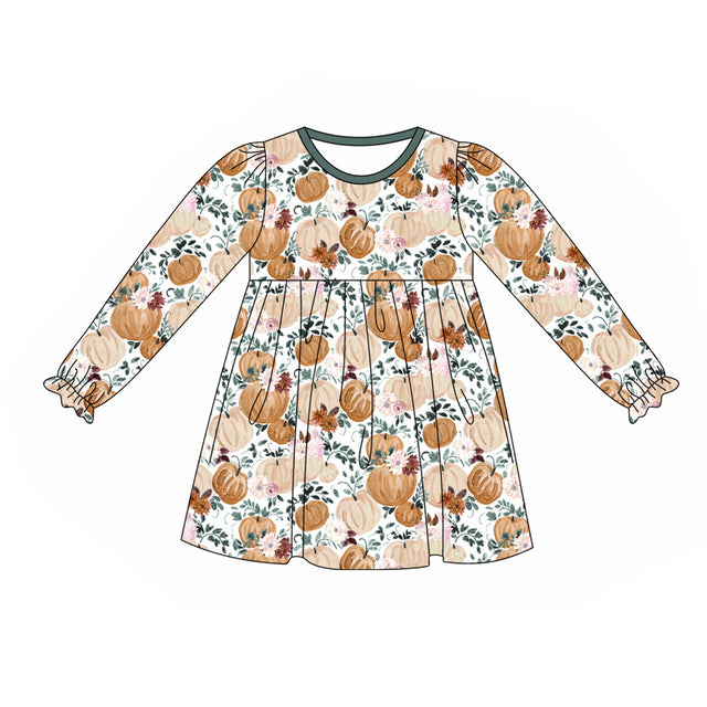 Long sleeves pumpkin floral girls fall dresses