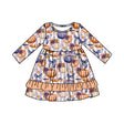 Long sleeves stripe pumpkin bow ruffle girls fall dress