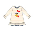 Long sleeves turkey bow stripe girls Thanksgiving dress