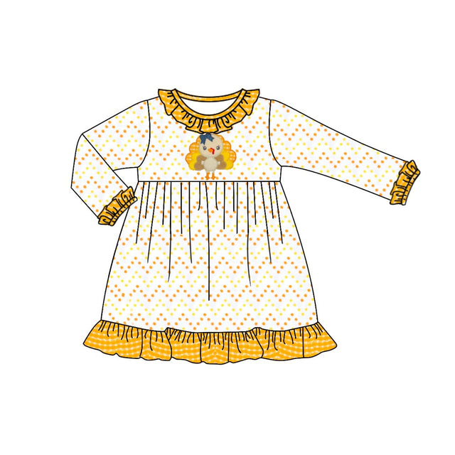 Long sleeves yellow polka dots turkey girls Thanksgiving dress