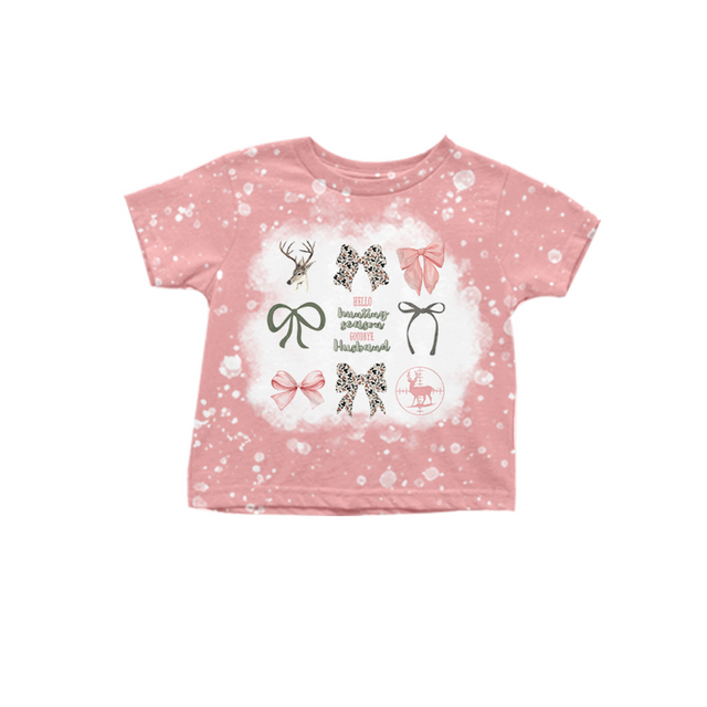 Pink bleached deer bow baby girls hunting shirt