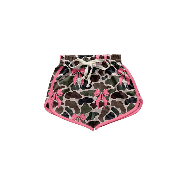 Pink bow camo baby girls summer shorts