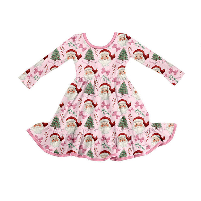 Pink bow candy cane santa girls Christmas dresses